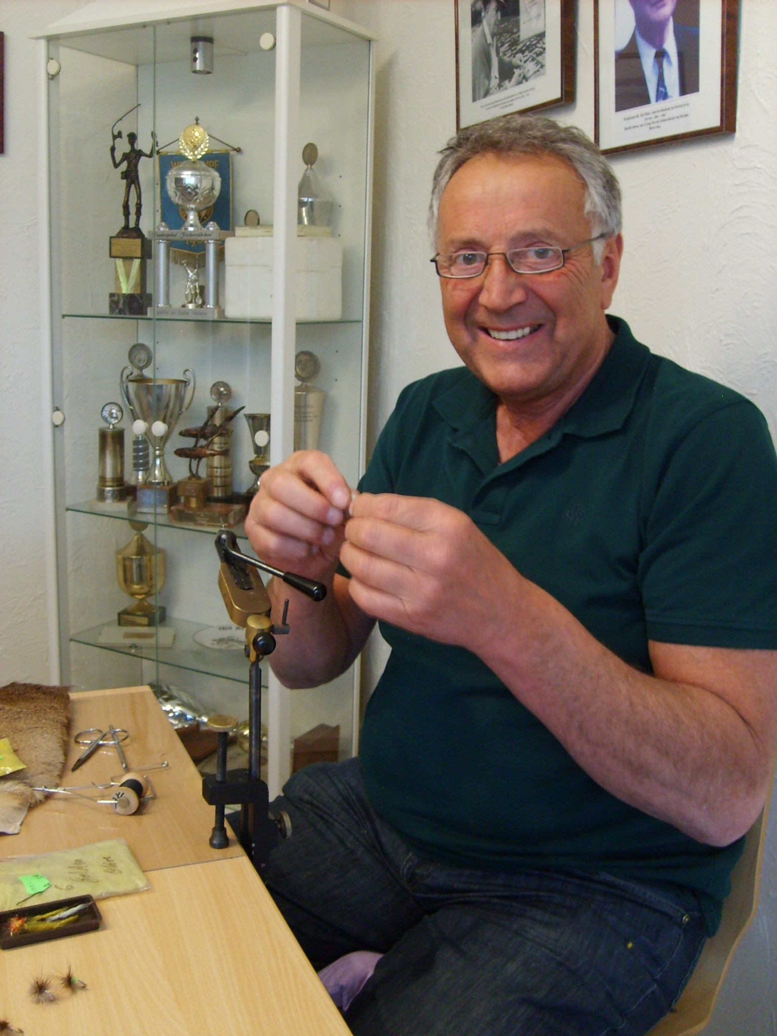 Thomas hat den Dreh schon raus und das Rehhaarbündel sauber auf den Haken gewickelt.